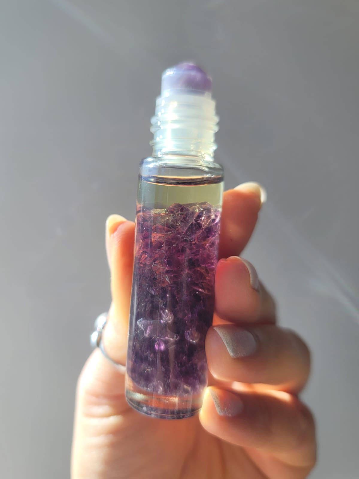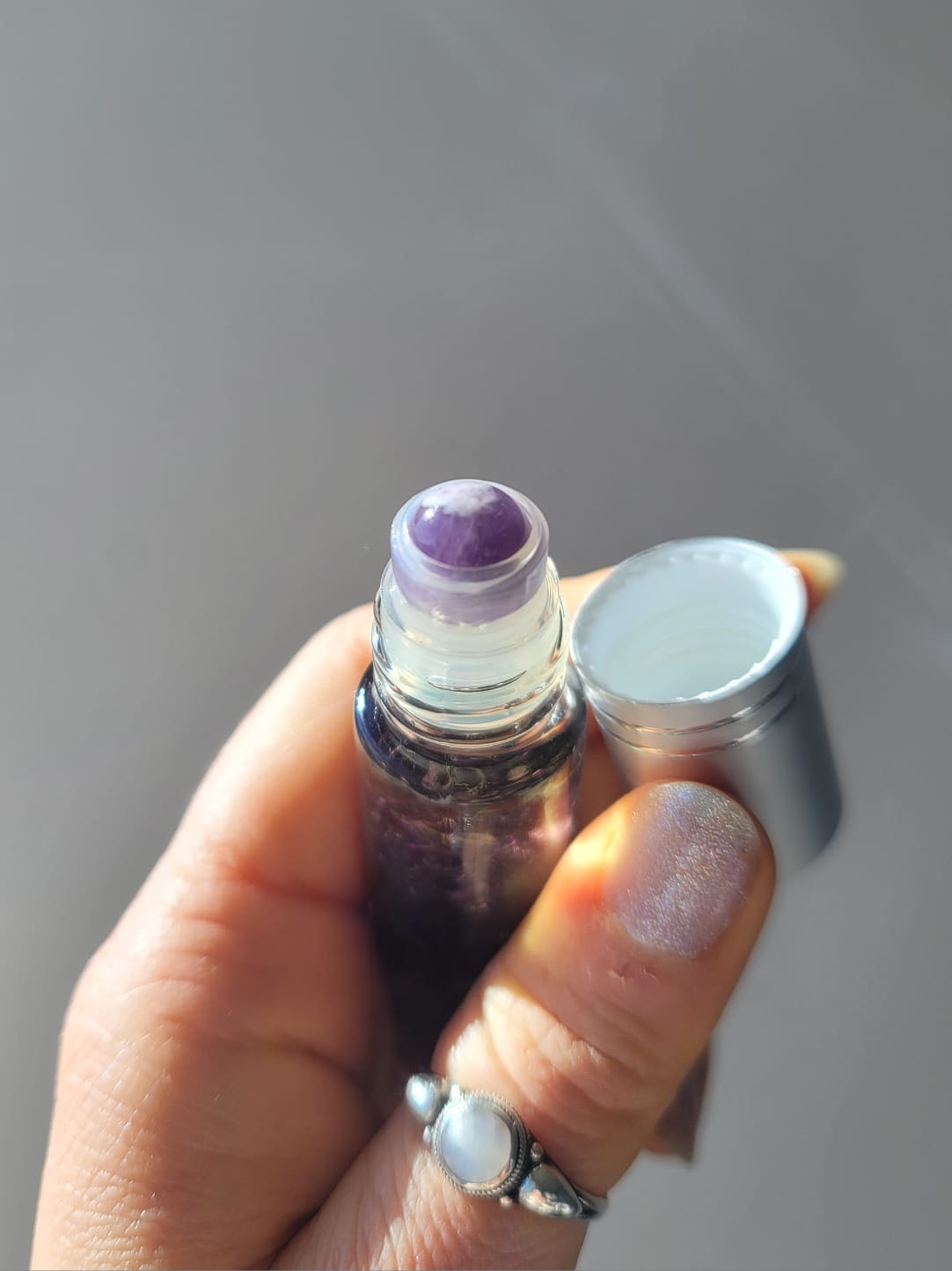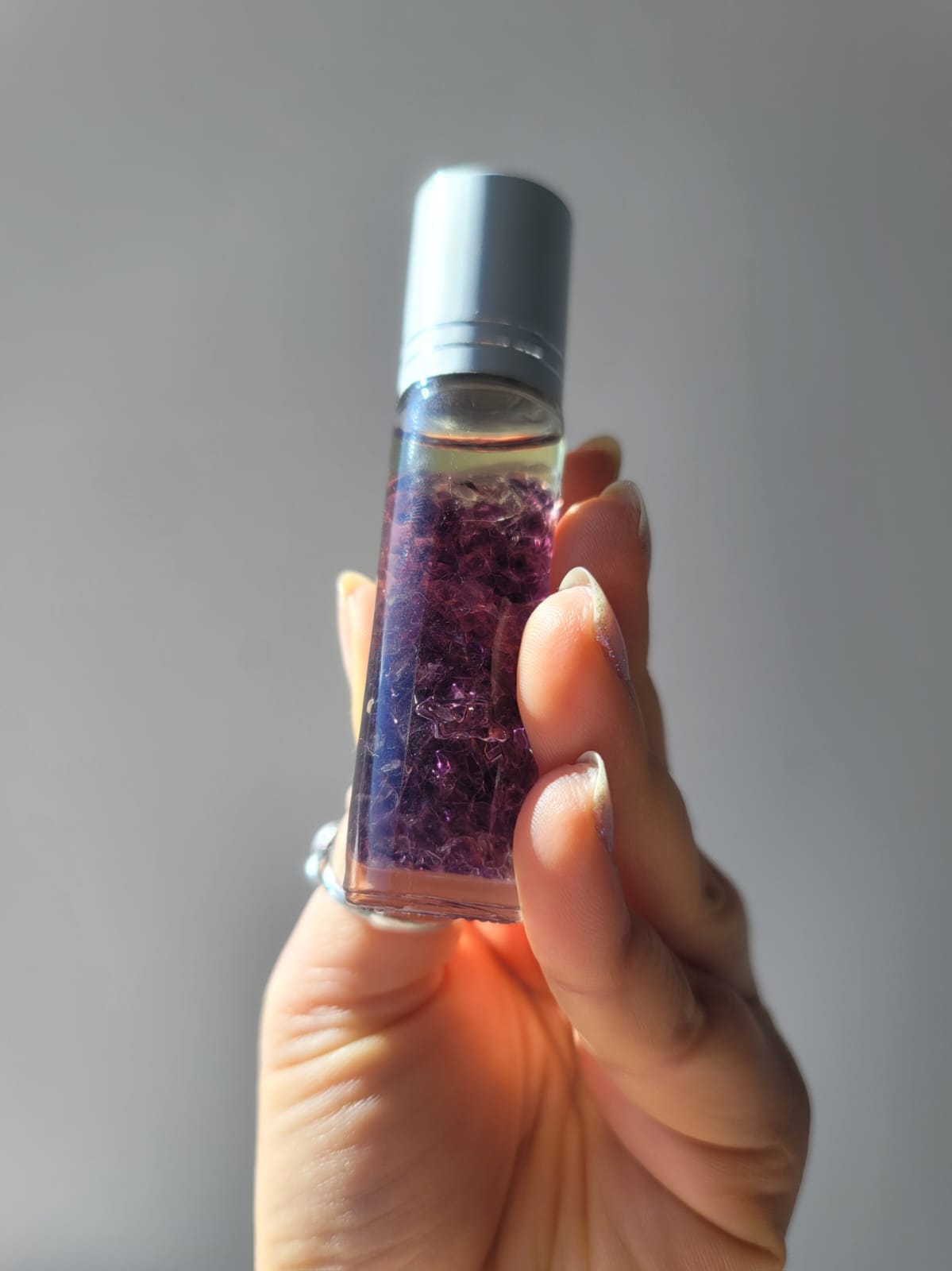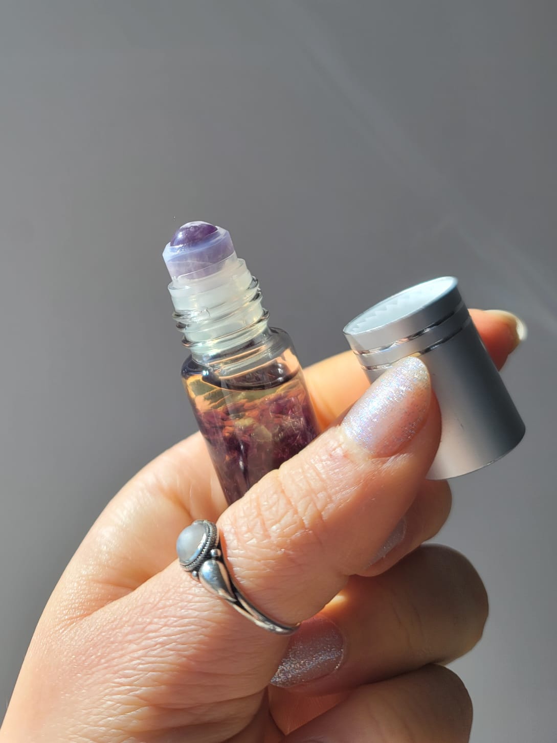 Vaj livando me kristal Amethyst brenda, me aplikues roller me top amethyst.